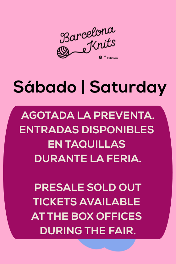 During the days of the event it will be possible to buy tickets for a day or weekend to access Barcelona Knits, as well as tickets for the workshops in case of availability.